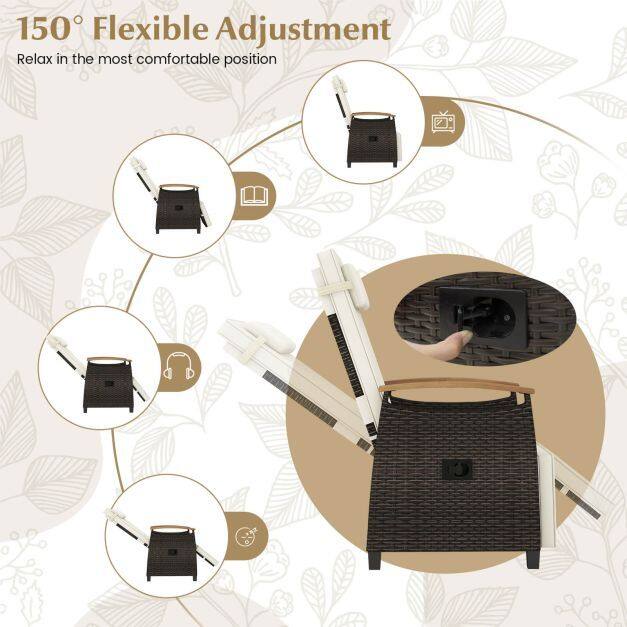 Adjustable Comfort: This patio recliner chair features a 150° adjustable backrest and an extendable footrest, catering to your comfort preferences. Whether you're reading, sunbathing or taking a nap, you can adjust it to the perfect angle for any activity.