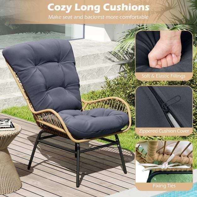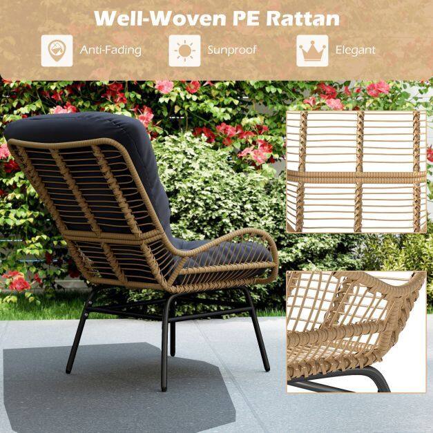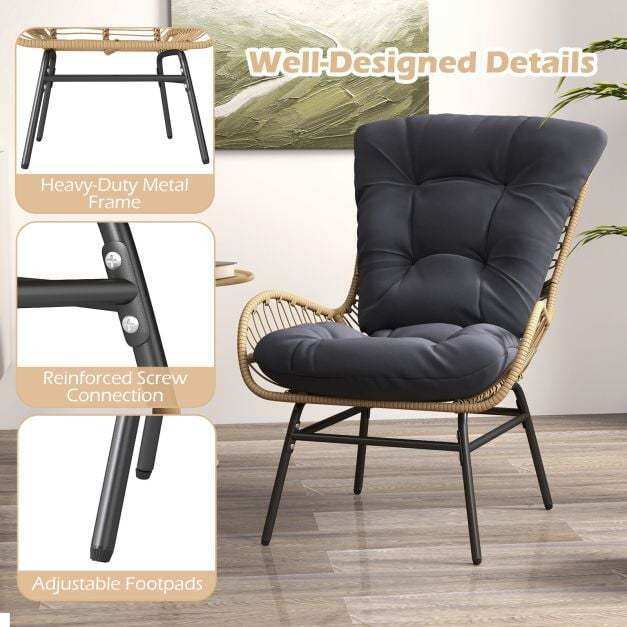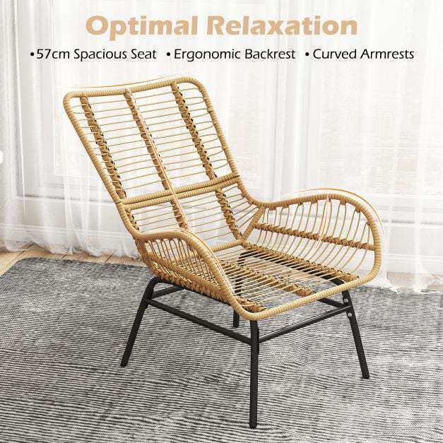 Appealing Rattan Design: This patio chair features well-woven PE rattan in natural color, bring more elegant touch. The rattan seat is also anti-fading for long-lasting outdoor use.