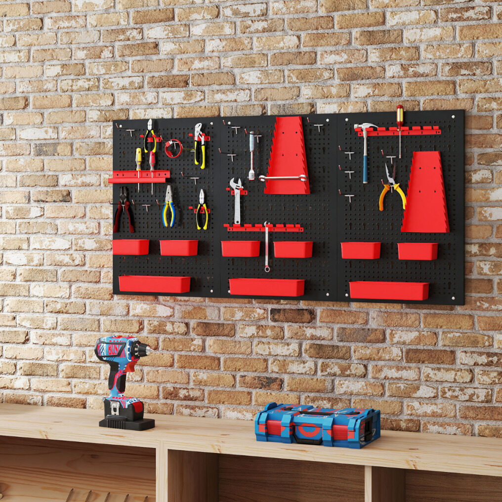 Allows you to store keys, hammers, screwdrivers and drill bits in an orderly manner