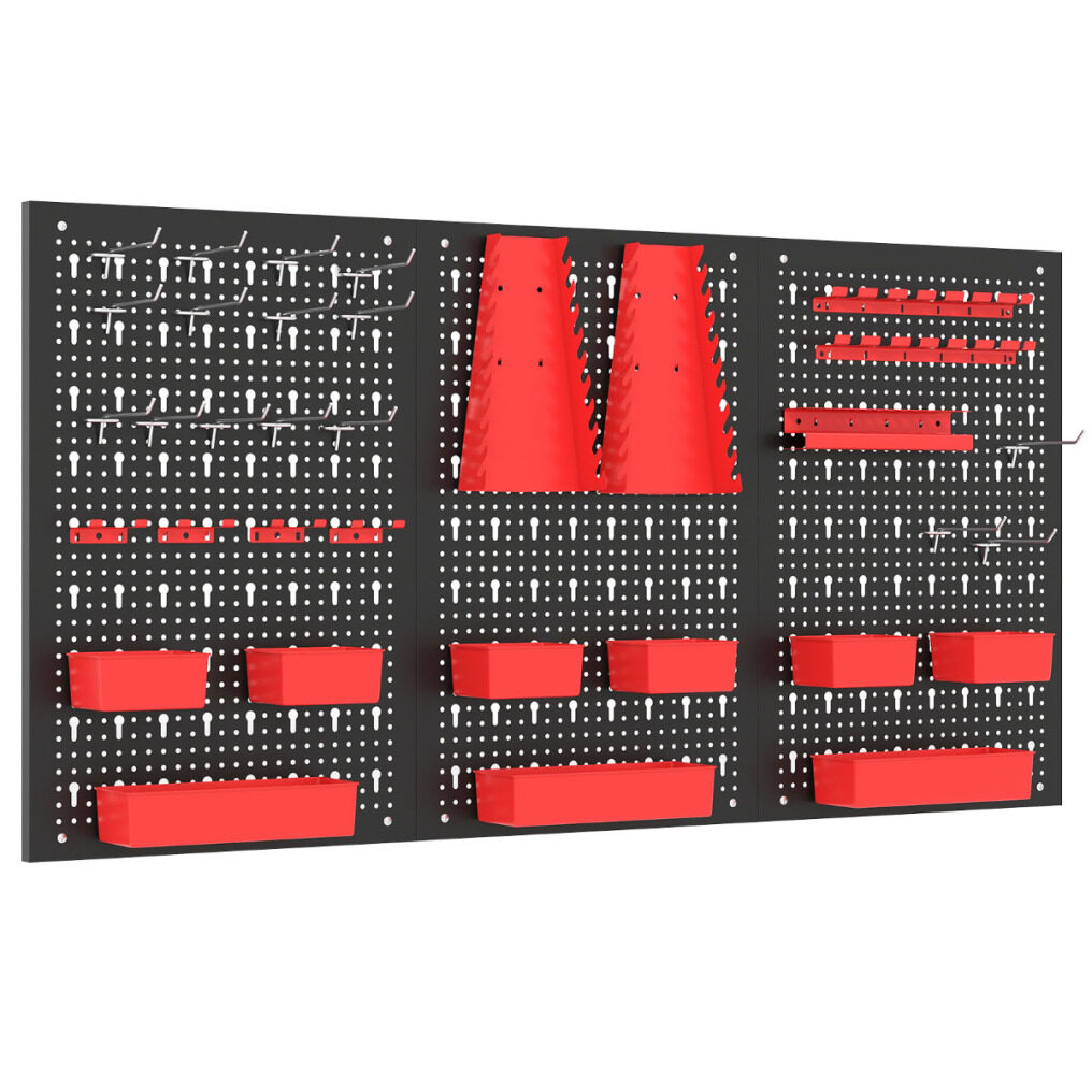 This storage set includes 9 bins, 4 hammer holders, a 30-slot screwdriver holder, 2 wrench holders, 2 7-slot screwdriver holders, and 16 hooks for an organized workspace. The customizable layout with regular holes meets a variety of needs. Plus, the easy-to-install design cleverly utilizes vertical space, making it ideal not only for garages and workshops, but also for better organizing an office or craft area. Bring order with this well-designed panel.