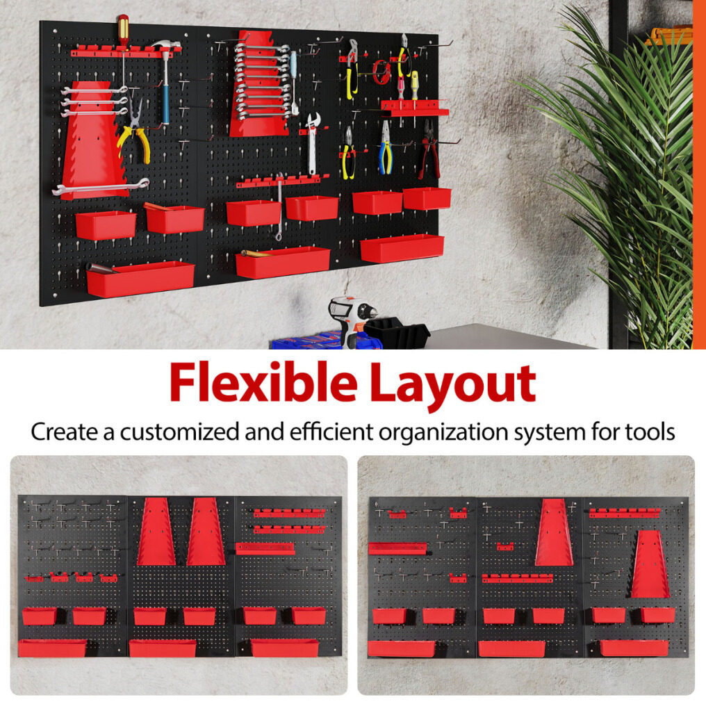 【Space-saving design】With pre-drilled mounting holes, this storage panel can be easily installed on any wall, optimizing the use of vertical space and reducing clutter in your garage or workshop.