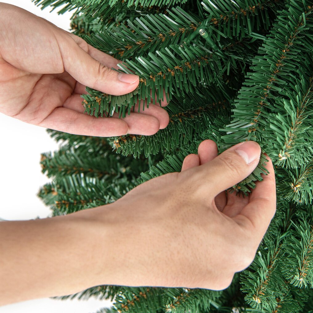 ● Realistic Design: Celebrate the holidays with the 5 ft/6 ft/7 ft/8 ft Christmas tree featuring 295/392/523/671 life-like branch tips. Made of premium PVC, this gorgeous tree is not only fireproof but also non-allergic and free of any unpleasant smells.