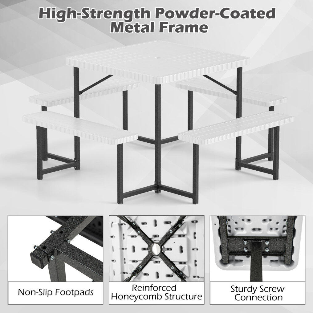 Picnic Table Bench Set Outdoor Square Camping Dining Table-White