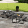 Sturdy and Stable Construction: Supported by heavy-duty powder-coated metal frames, the table and benches provide reliable support and are not easy to deform or crack. Complemented with adjustable footpads, the dining set keeps stable even on the slightly uneven floors.