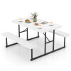 Sturdy and Stable Construction: Supported by heavy-duty powder-coated metal frames, the table and benches provide reliable support and are not easy to deform or crack. Complemented with adjustable footpads, the dining set keeps stable even on the slightly uneven floors.