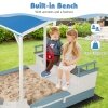 Made from premium fir wood, this wooden sand box is designed to withstand the test of time. The included canopy offers shade from the sun and shelter from the rain, ensuring children can play comfortably. Equipped with armrests and a footrest, the bench can accommodate 2 kids while also providing storage space underneath for easy access to toys and snacks. The pirate ship sandbox features a bottomless design, combined with a liner, allows for easy sand depth adjustment, drainage, and air circulation. Resembling a pirate ship, this outdoor sand pit sparks imaginative play among children aged 3-8 years old, encouraging outdoor adventures with friends.