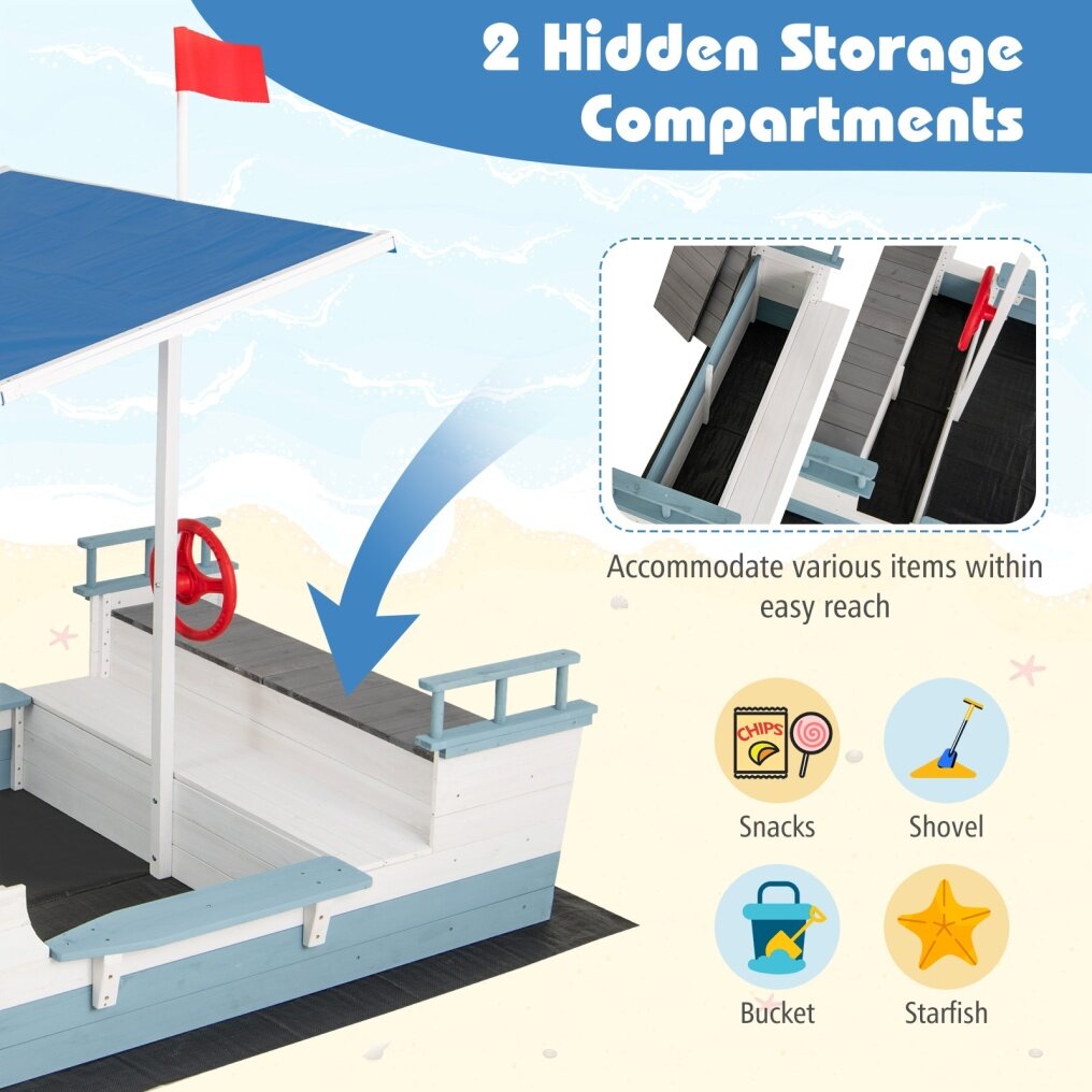 Equipped with a Canopy: The pirate ship sandbox comes with a sun-proof and rainproof canopy, allowing children to stay cool and comfortable while digging. Thanks to this protective canopy, little ones can enjoy a comfortable exploring experience in your outdoor space.
