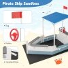 Engaging Sandbox for Children: Shaped like a pirate ship, this outdoor sand pit includes a flag, rudder, simulated prow and 4 extra seating positions, stimulating imaginative and creative play for children from 3 to 8 years old. It complies with EN71 and REACH, serving as a reliable choice for your child’s high-seas adventures.