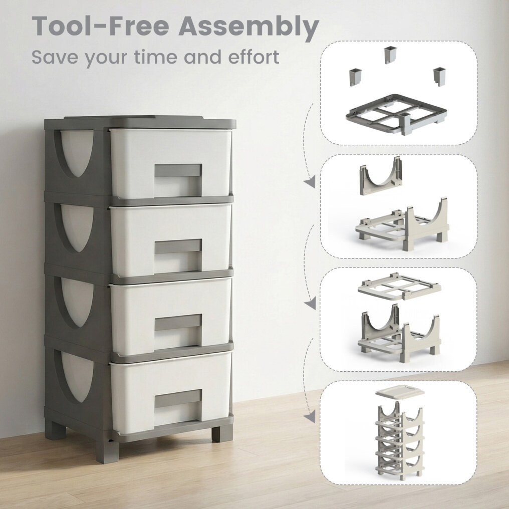 ● Tool-Free Assembly: This compact drawer cabinet is designed for quick assembly without tools, saving your time and effort. Smooth rounded corners enhance safety during daily use, making the it a reliable organizer for living spaces.