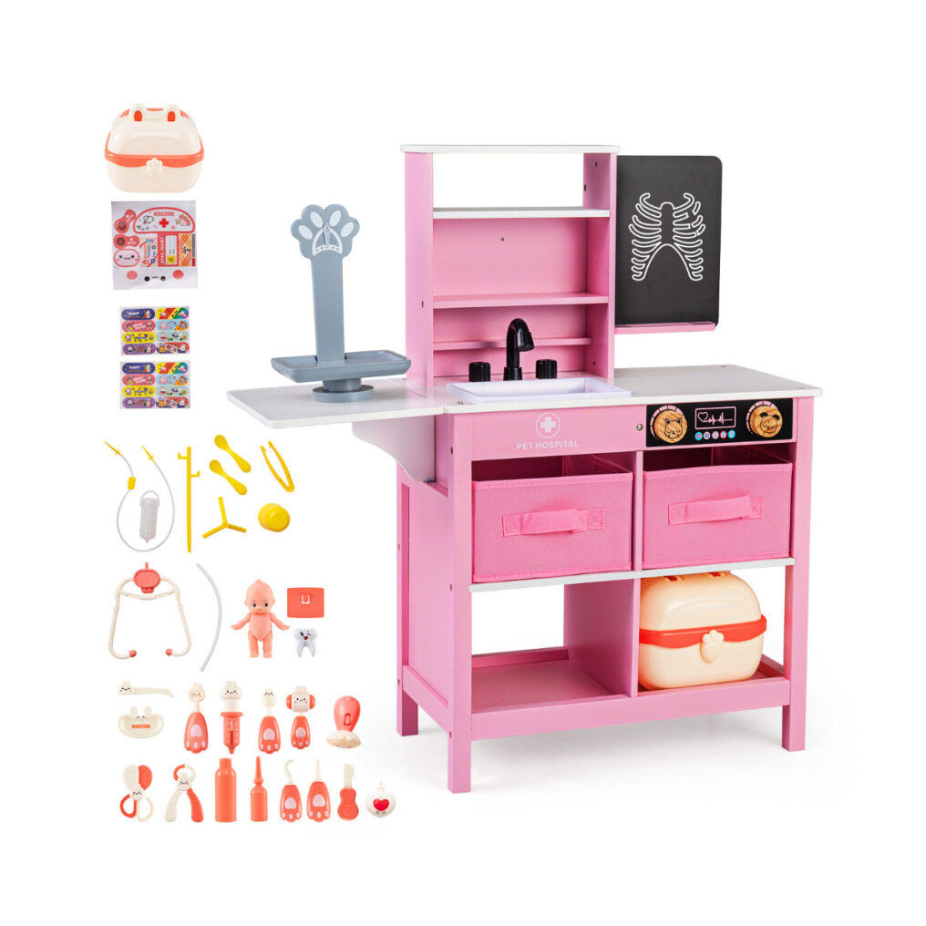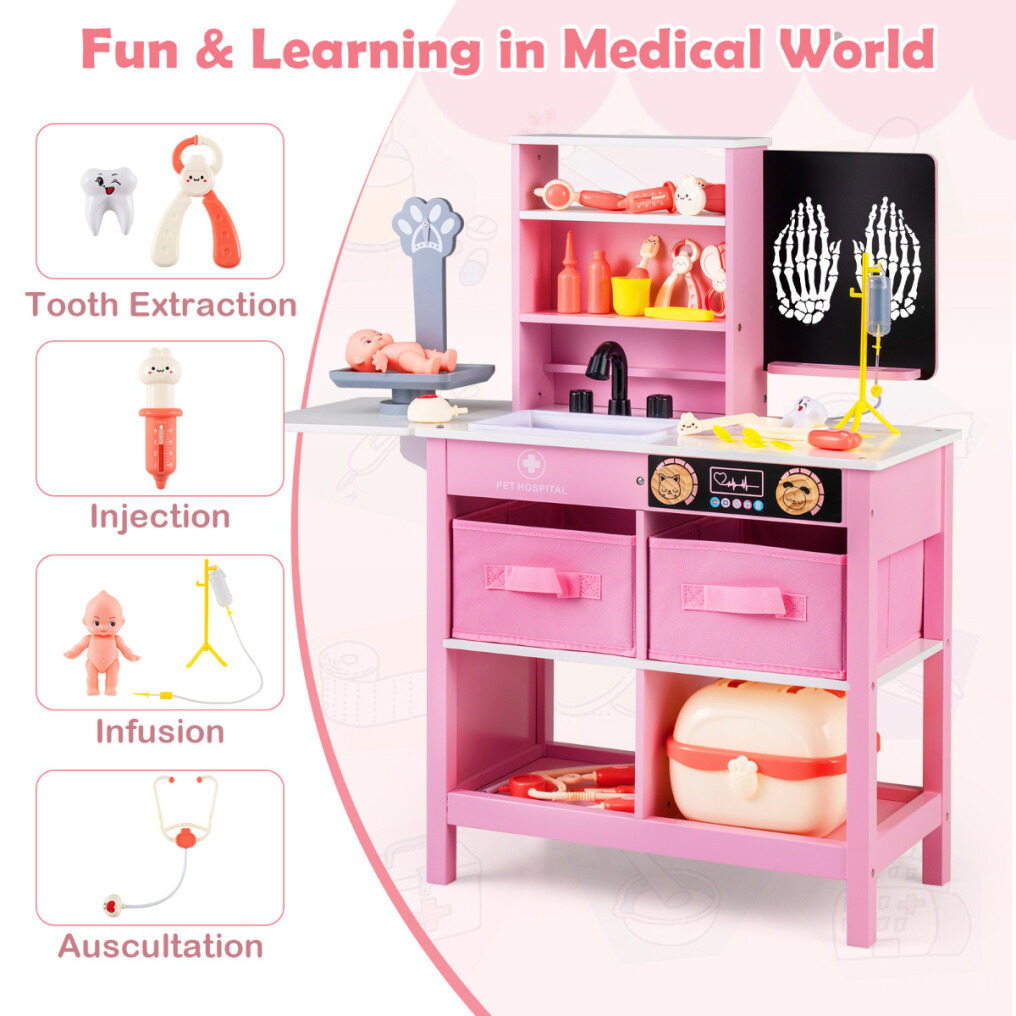 ● Fantastic Game Settings: The medical center play set offers a variety of interactive stations including a writable blackboard for creative notes, a playful cartoon pet scale, a realistic faucet and sink, plus 2 rotation knobs that click. Children can immerse themselves in a lifelike role-play experience.