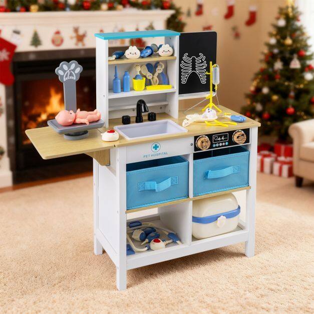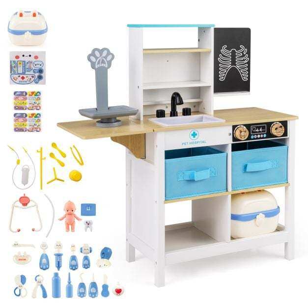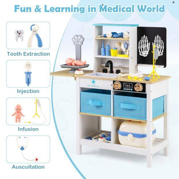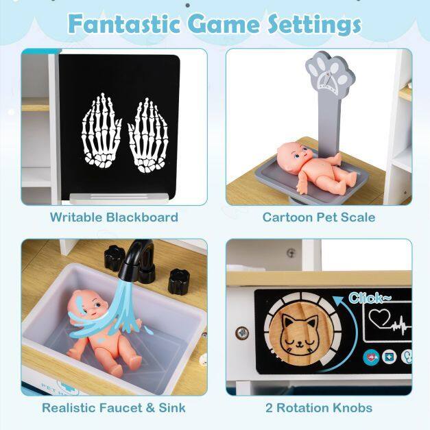 ● Fantastic Game Settings: The medical center play set offers a variety of interactive stations including a writable blackboard for creative notes, a playful cartoon pet scale, a realistic faucet and sink, plus 2 rotation knobs that click. Children can immerse themselves in a lifelike role-play experience.