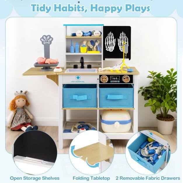 ● Tidy Habits, Happy Plays: Designed with open shelves, spacious compartments, storage grooves, and a medical carrying case, the play doctor's office makes tidying up part of the play. 2 fabric drawers and a foldable tabletop allow every accessory to have its own place, helping children learn organizational skills.