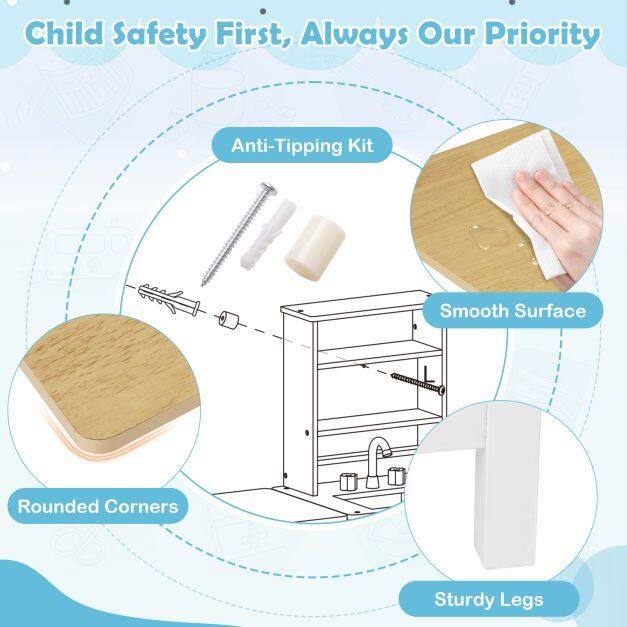 ● Superior Safety for Worry-Free Play: Every detail of the medical center play set is crafted with safety in mind, featuring an anti-tipping kit, rounded corners, and a smooth surface to prevent scratches or bumps. Supported by sturdy legs, parents can feel at ease while children explore and interact, knowing safety comes first.