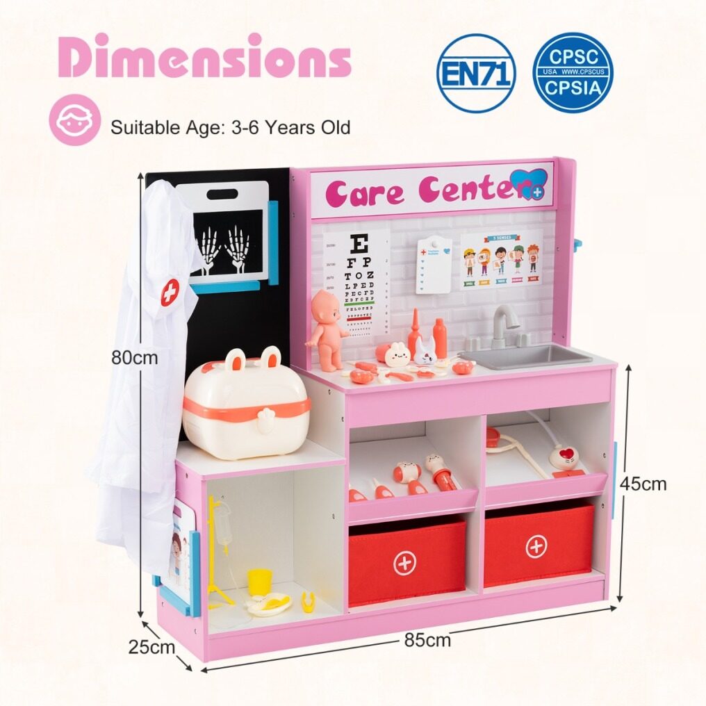 ● Play with Confidence: Your child's safety, our top priority. The wood medical center toy set boasts a secure frame with an anti-tipping kit for extra stability. Moreover, its rounded corners and smooth surface perfectly prevent accidental abrasions.