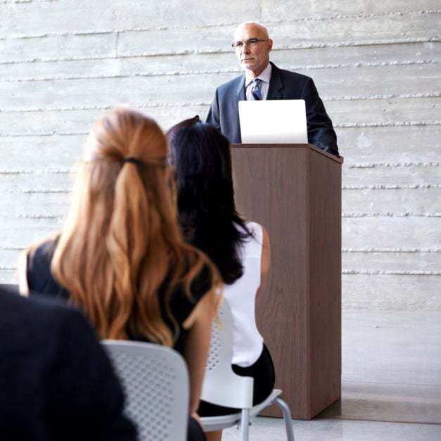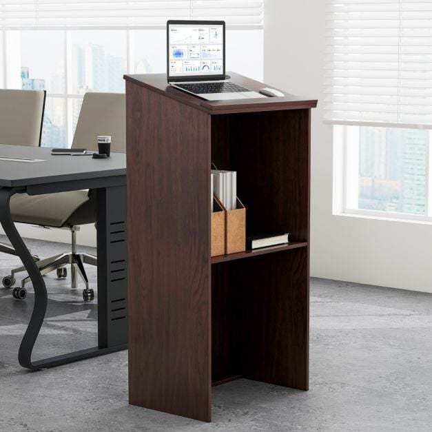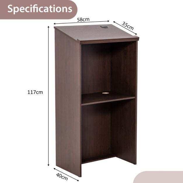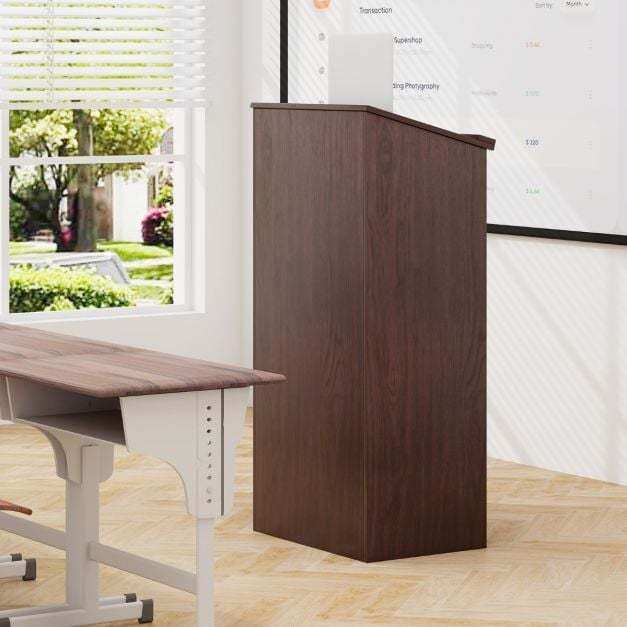 Built with Strength: Made of thickened and durable engineered wood, the lectern desk will support your speaking engagements for years to come. In addition, the extra support bar at the bottom ensures that it remains steady, even during dynamic speeches or presentations.