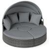 Enhance your outdoor living with our patio round bed. This outdoor seating area features a retractable canopy, allowing for perfect shaded or sunny lounging. The sturdy metal frame of this rattan daybed ensures stability in your garden, backyard, or poolside. Each section, including the outdoor lounger, is crafted from hand-woven, sun-resistant PE rattan, ensuring both aesthetic appeal and durability.