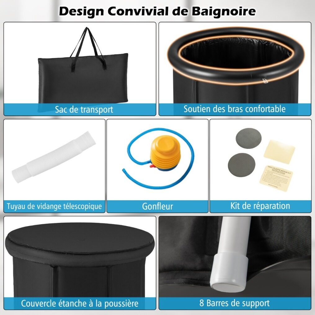 ● Easy Set Up & Storage: Conveniently set up in less than 5 minutes with the included inflator and 8 supporting bars, this inflatable bath tub can take your wellness journey to the next level. Plus, when not in use, you can easily fold this tub up to save space and make it easy to store or carry away with the carrying bag.