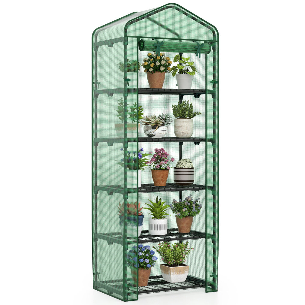 ● Ample Shelving Space: This winter greenhouse features 5 sturdy wire shelves, each holding up to 22 lbs/10 kg, designed for flowerpots, seedling trays, and gardening tools, etc. Plus, there are practical fixing clips to keep everything in place without worry.