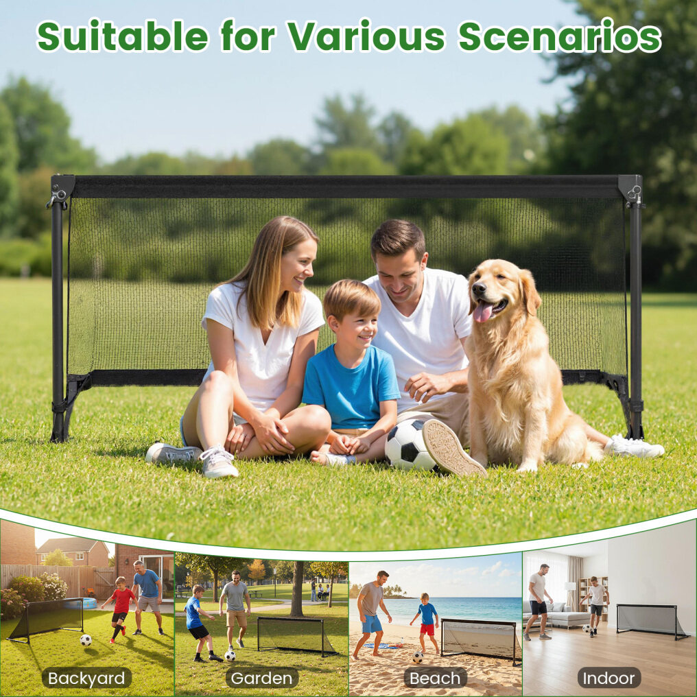 This soccer net features a sturdy, powder-coated metal frame combined with high-quality PE net and oxford fabric, making it the perfect choice for kids and youth looking to improve their soccer skills outdoors. What's more, assembly takes just minutes with a simple tool-free process, while the foldable and lightweight design ensures easy storage and transport. Whether you're organizing a backyard match, weekend park practice, or simply encouraging active play, it ensures exceptional stability and versatility, giving young athletes the confidence to kick, score, and play anywhere.