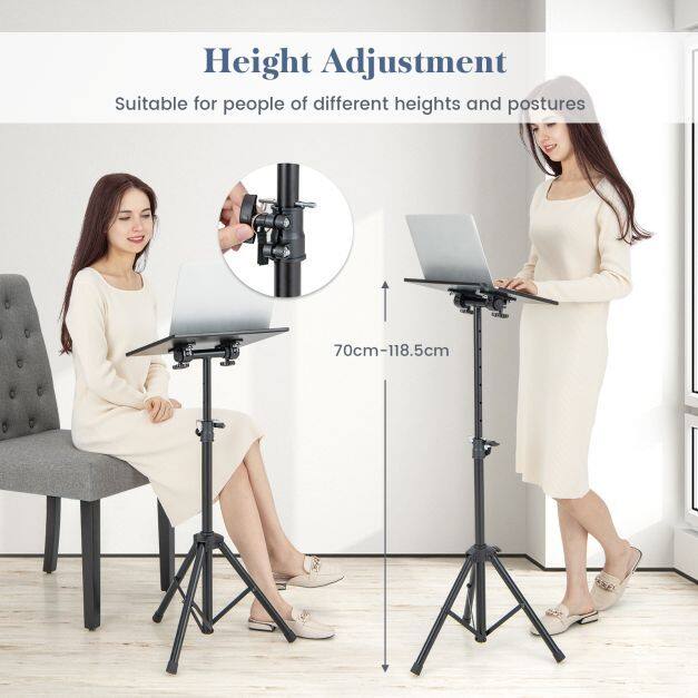 This tripod stand is made of high quality metal material, providing a sturdy and secure platform for your valuable equipment. It can hold up to 10 kg. Featuring a supporting tray with 180°(±90°) tilting, the tray lets you tilt to the right position for a more comfortable viewing angle. Besides, it comes with a height adjustment knob for you to adjust the height from 70cm- to 118.5cm, you can put projectors, laptops, tablets, DJ equipment, music sheets, and cell phones on the tray. Whether you're a musician, presenter, or photographer on the go, our projectors is foldable and lightweight for you to store and transport with ease. If you are looking for a projector stand like this, do not hesitate to place an order!