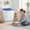 ● Double the Power, Double the Clean: Meet the twin tub washing machine that packs a 18 lbs washer and 11 lbs spin dryer into one space-saving unit. With separated motors engineered for powerful performance, your laundry gets done faster, ideal for anyone always on the go!
