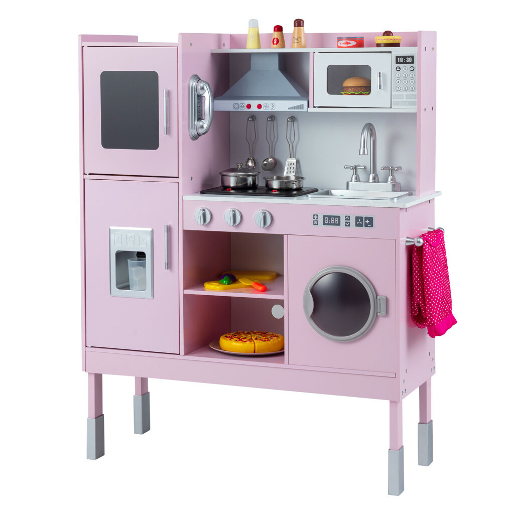 ● Reliable Design & Rich Storage: Crafted from high quality materials, the kids kitchen promises to accompany kids to grow up. And the anti-toppling device is equipped for stability and safety. What's more, the sufficient storage space holds a variety of items within reach.