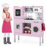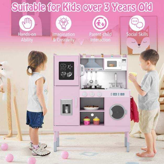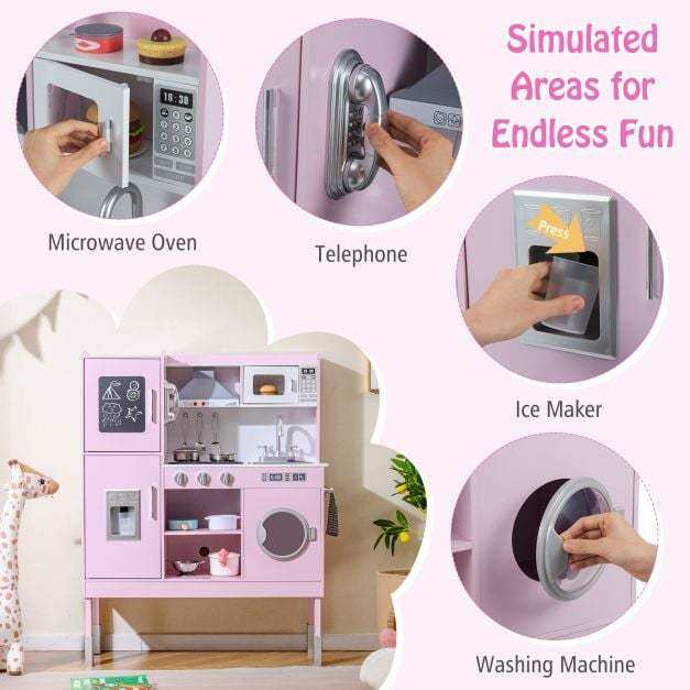Pretend Play Kitchen Toy Kitchen Playset with Range Hood Ice Maker and Telephone-Pink