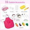 ● Abundant Accessories Included: The pretend play kitchen comes with 16 cooking accessories. They are 4 vegetables, 3 stainless steel scoops, 2 stainless steel pots, 2 ice cubes, chef hat, apron, cup, knife and plate. As a result, children will have hours of fun.