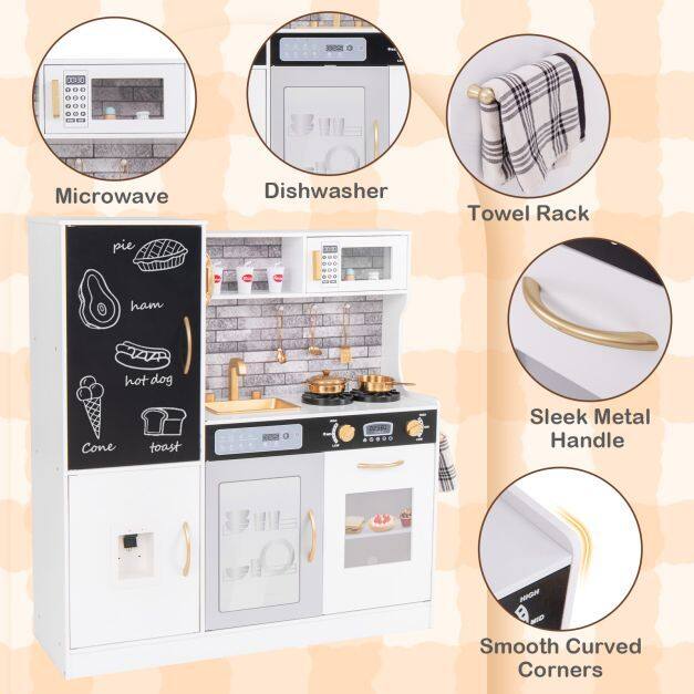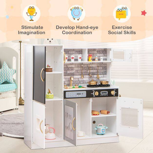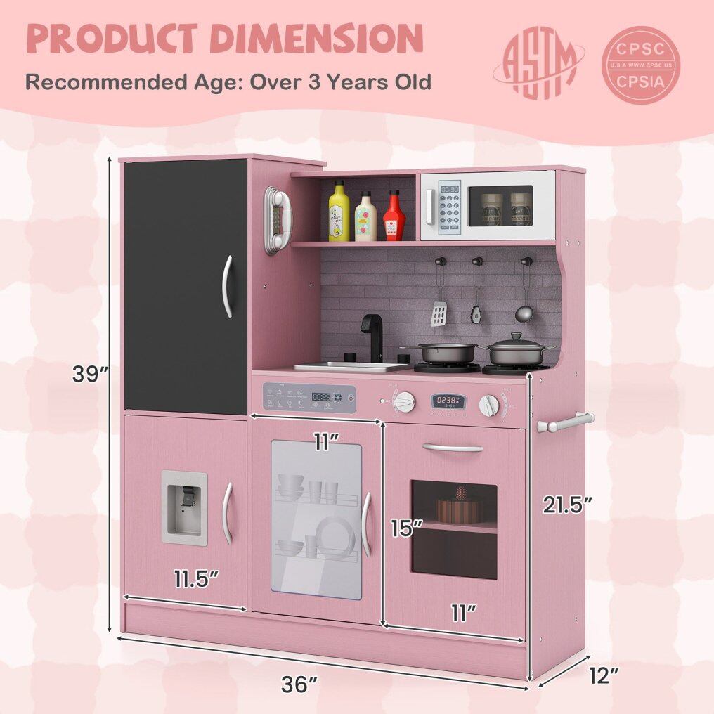 ● Perfect Gift for Kids: This play kitchen is designed to nurture children's hobbies, enhance fine motor skills, improve language abilities, and boost social skills through interactive play. It complies with ASTM and CPSIA certifications for safety and quality assurance.