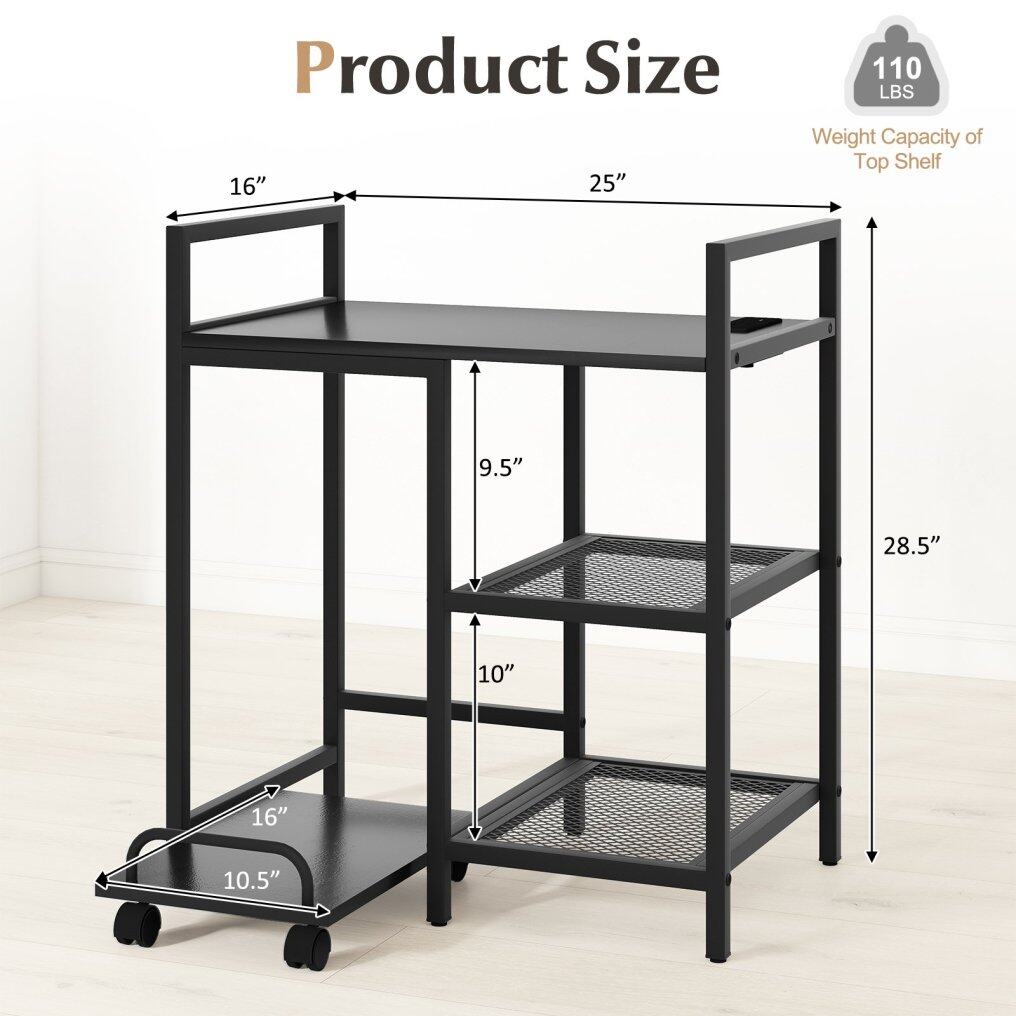 ● Multiple Storage Options: Not just a stand for your printer, this printer table features 2-tier mesh storage shelves, seamlessly organizing essential office supplies. The open design also provides easy access for items while keeping them within reach.