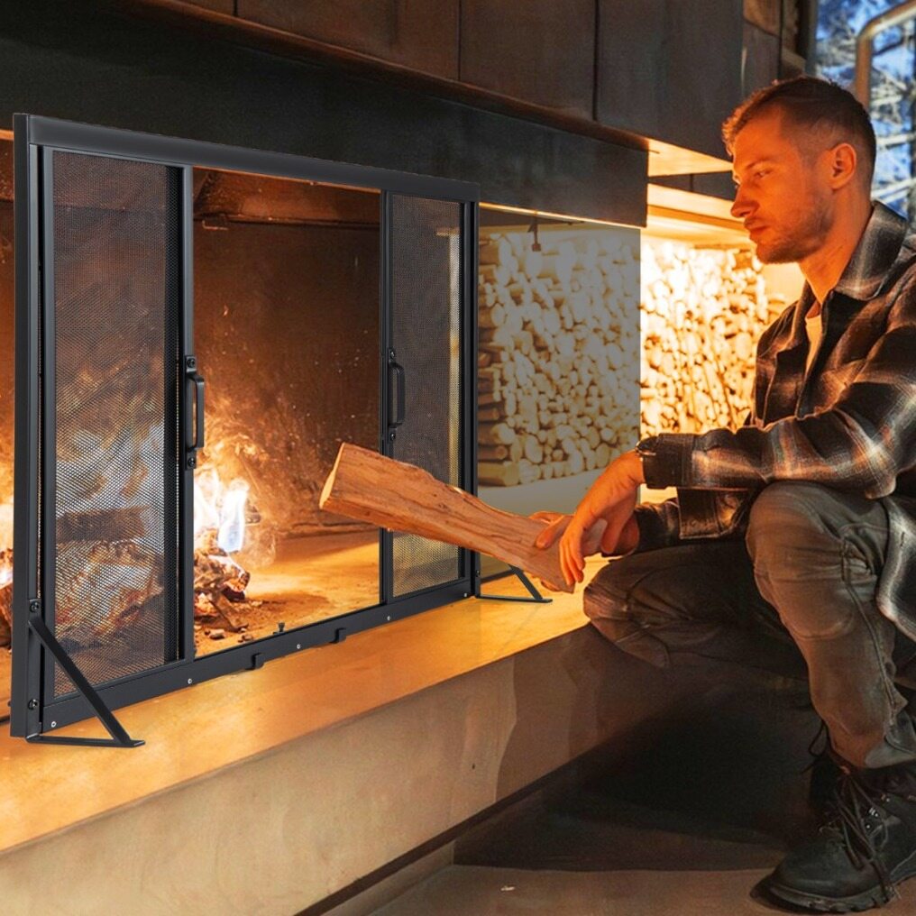 【 Fireplace Screen with Sliding Doors 】 This fireplace screen features 2 smooth sliding doors that open with convenient handles, giving you instant access to add logs or stoke the fire. Since you never need to lift or move the entire unit, tending your fire becomes safer and faster.