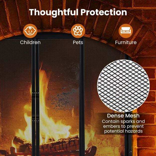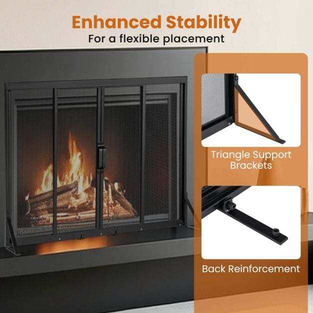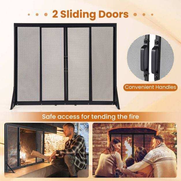 【Fireplace Screen with Sliding Doors】This fireplace screen features 2 smooth sliding doors that open with convenient handles, giving you instant access to add logs or stoke the fire. Since you never need to lift or move the entire unit, tending your fire becomes safer and faster.