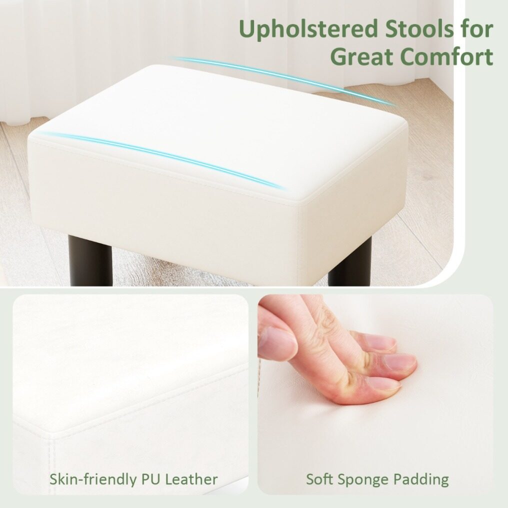Cozy Padded Seat: For great comfort, the elastic sponge padding softly supports your feet. Wrapped in skin-friendly PU leather, the step stool provides not only cozy touch but also the convenience of easy cleaning.