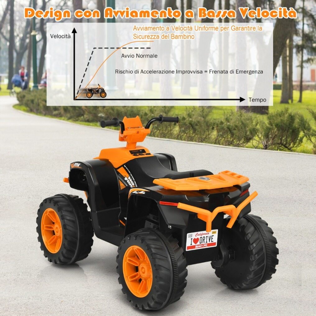 Slow start to protect children: This ATV features slow start technology to protect children while riding by preventing sudden, frightening starts. The seat adapts to the body's curves for increased comfort while sitting.