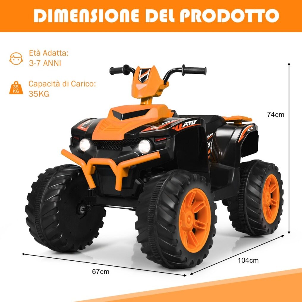 Wear-resistant wheels for all-terrain riding: With wear-resistant wheels, this quad can be ridden on all terrains, such as beaches, rubber tracks, concrete roads, and more. Whether indoors or outdoors, kids can have fun anywhere. Additionally, the 4 wheels have a large diameter to ensure kids' stability.