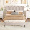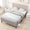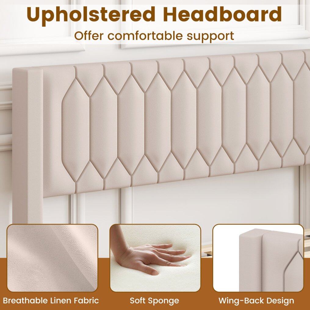 ● Modern Wingback Headboard: Wrapped in plush Dutch velvet/breathable linen fabric with geometric quilting, the wingback silhouette offers cushioned support for reading or screen time while adding a sleek, contemporary look.
