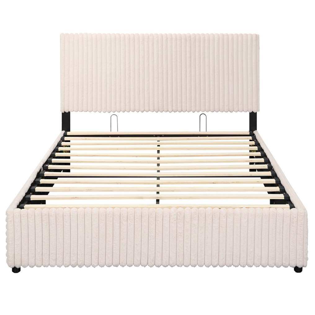 ● Luxurious Plush Upholstery: Wrapped in premium corduroy fabric and padded with high-density sponge, this bed frame with headboard ensures sophisticated style and exceptional comfort. The cushioned headboard provides perfect back support for reading or screen time, creating a cozy retreat in your master bedroom.