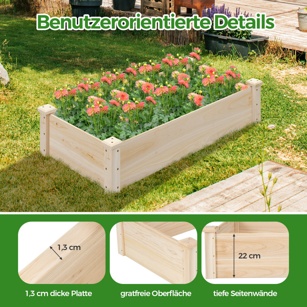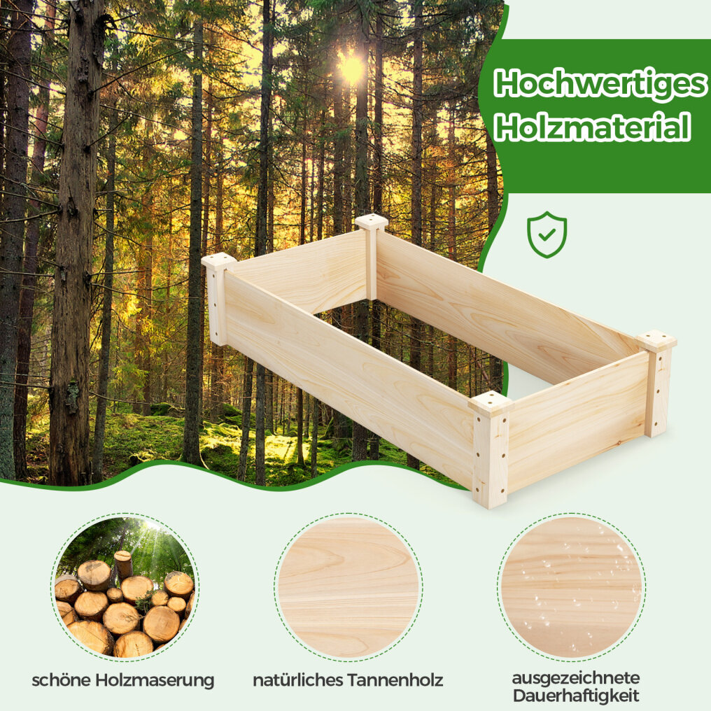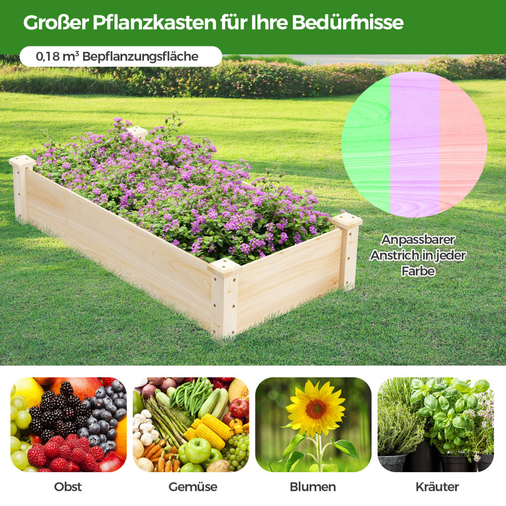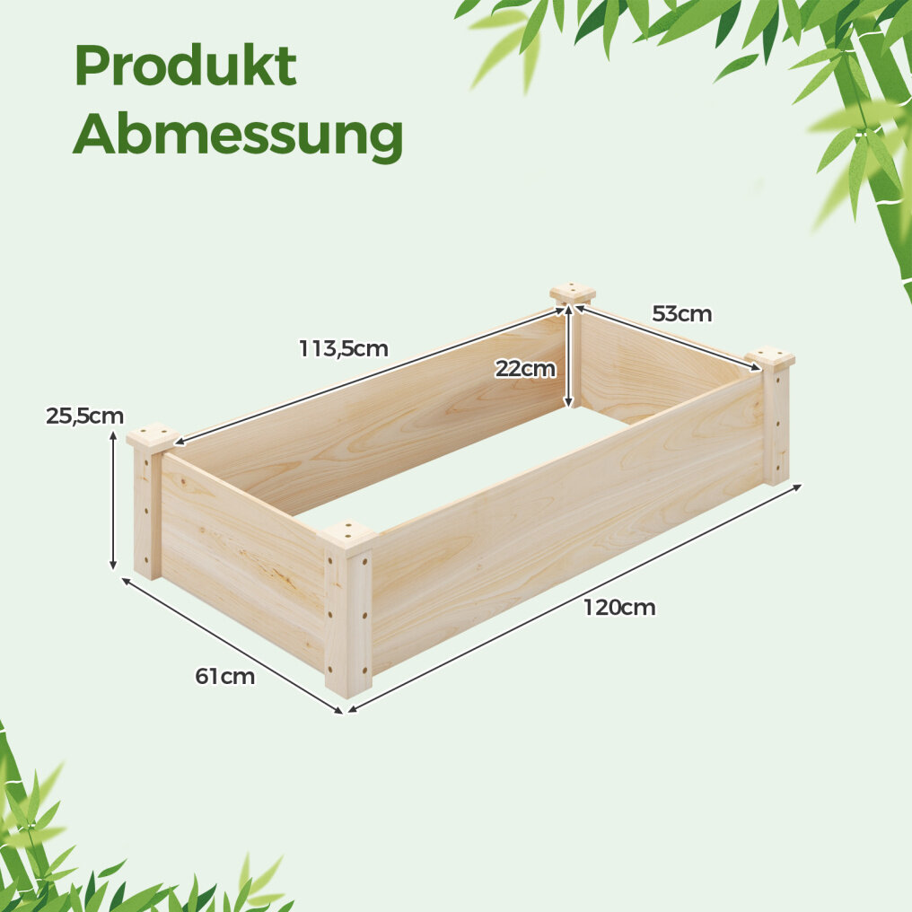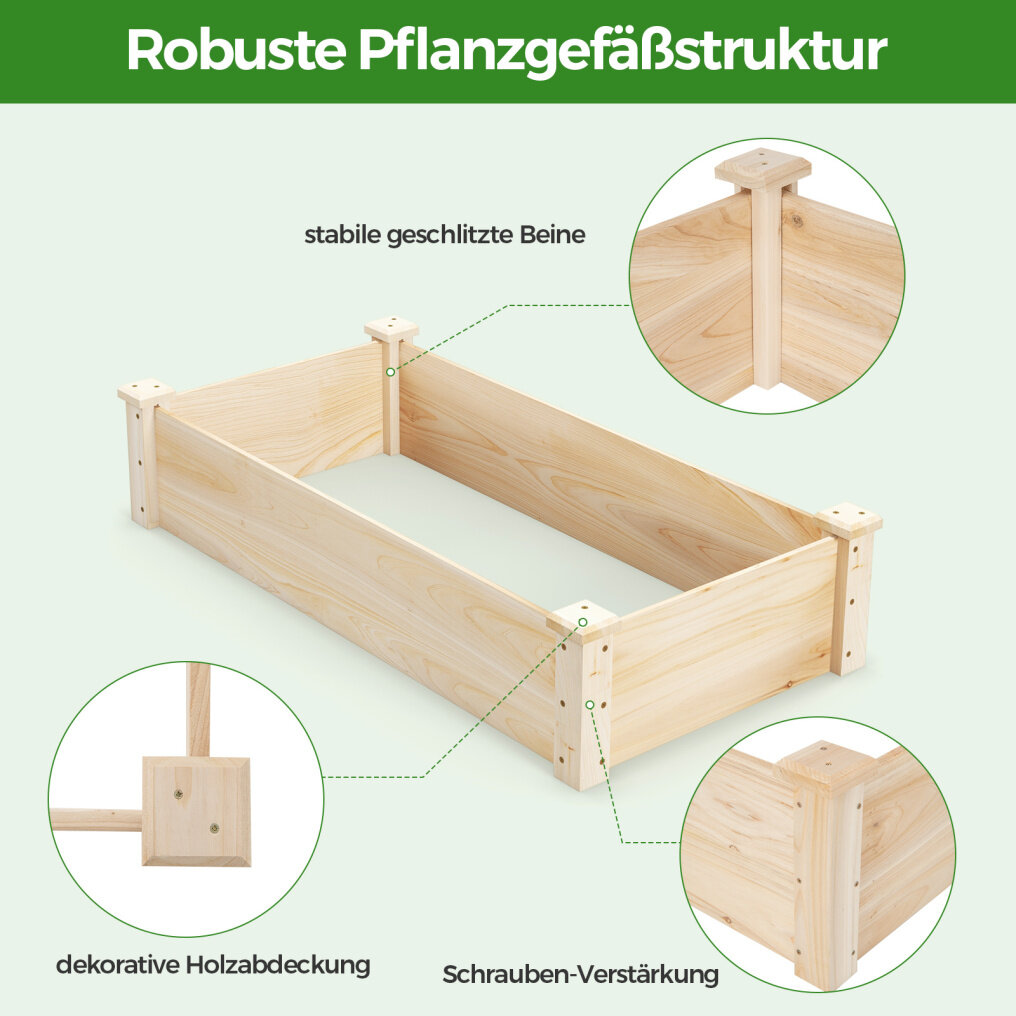 ● 100% Natural Fir Wood: Made from premium fir wood material, this planting bed features nice wood grain that adds a touch of elegance to your garden or patio. In addition, the high quality wood ensures excellent durability, allowing the planter to last for years.