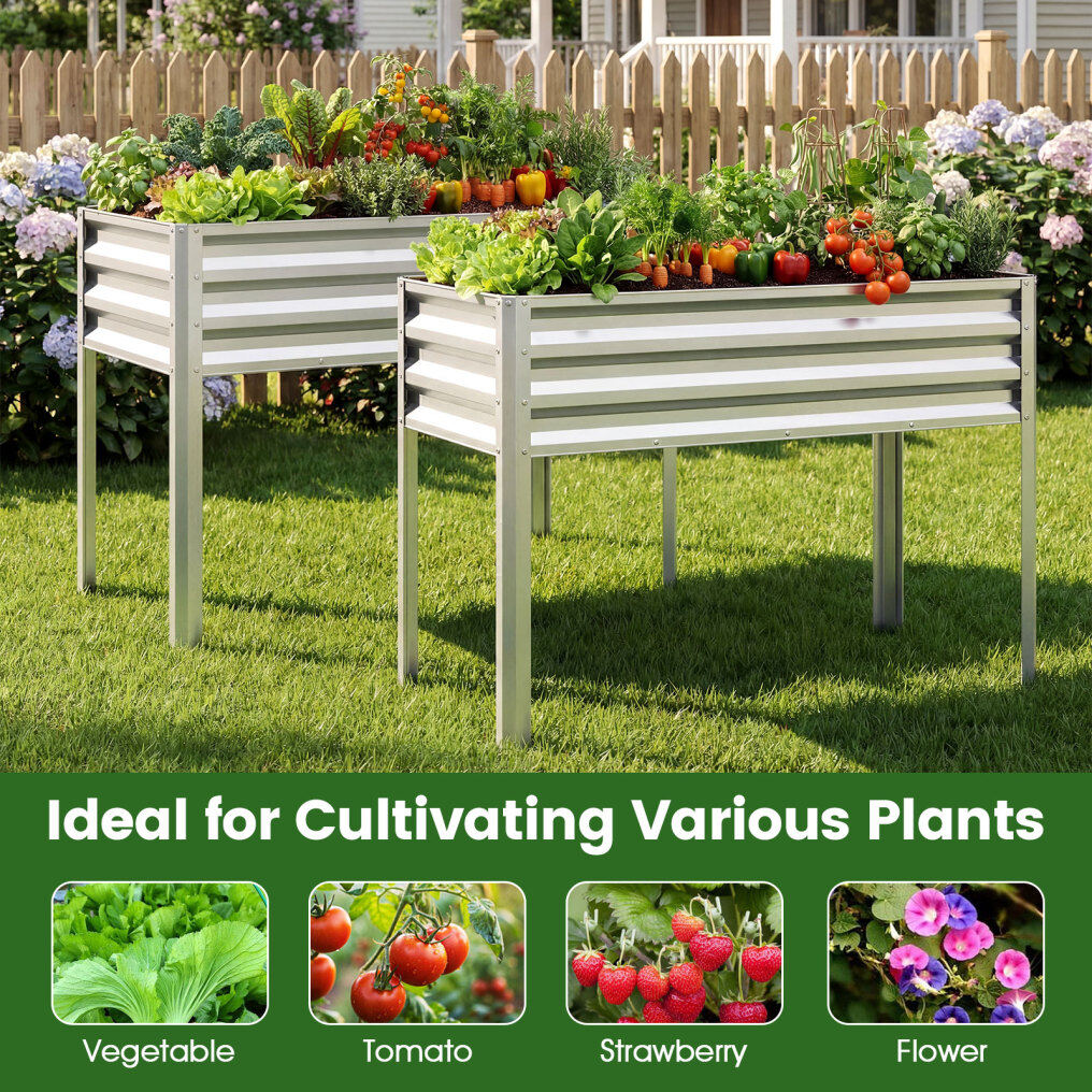 ● Ergonomic Height: This raised garden bed stands at a 32" comfortable working height, so daily watering, pruning, and harvesting feel effortless with less bending and reduced back strain. Plus, the elevated design also protects plants away from small animals.