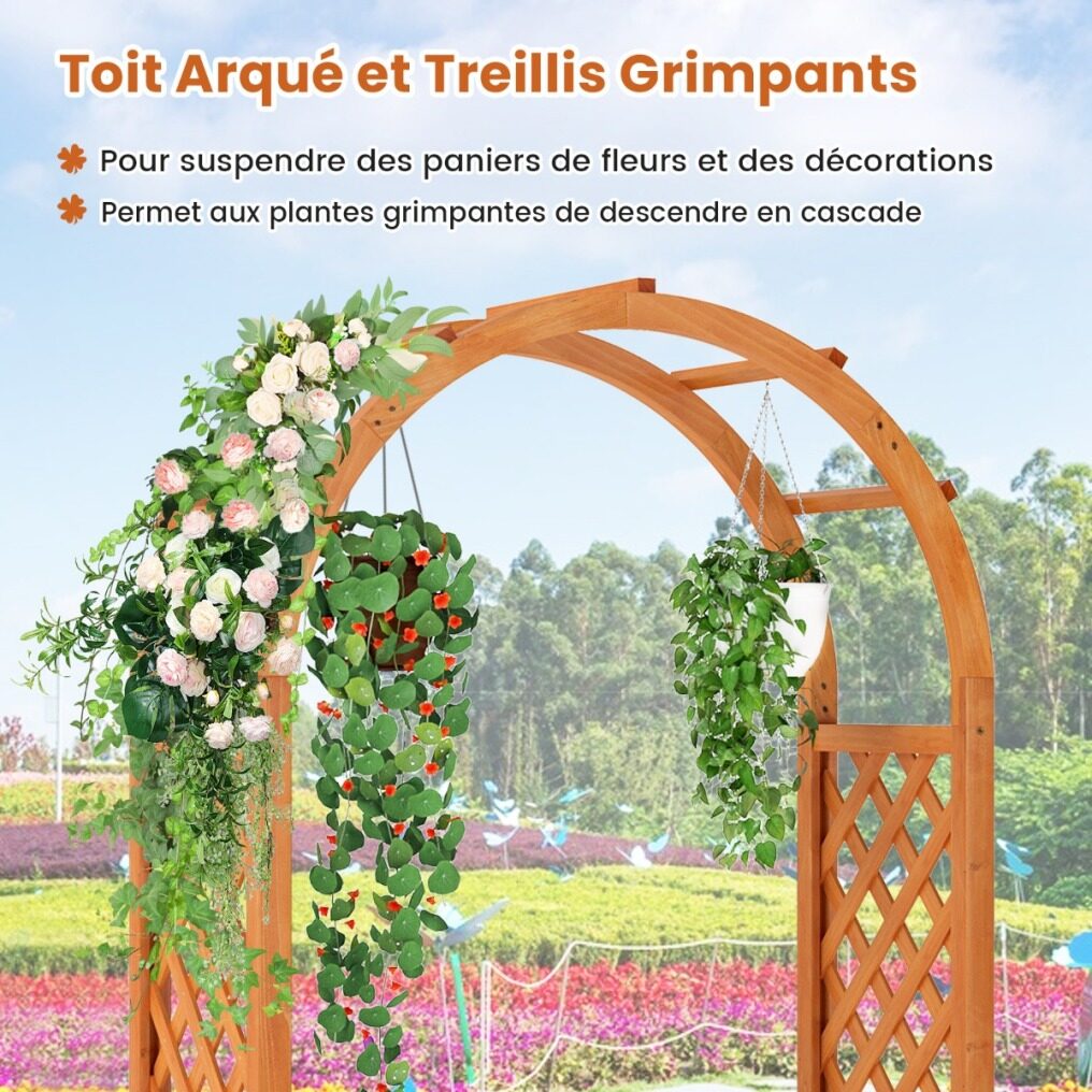 -The arched roof allows for hanging flower baskets, lights, or other decorative items
