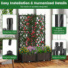 Our 2-in-1 raised garden bed measures80 x 40 x 126 cm (L x W x H), including 2 separate planter boxes and lattice trellises, providing ample planting space and enough vertical support for various climbing plants, from vegetables and fruits to flowers and herbs. The interconnected design allows it to connect with more than 2 sets to create a larger planting area. Moreover, the planter box is equipped with a self-watering system and drainage holes, helping plants absorb water and nutrition completely while preventing water logging. Crafted from solid metal tubes with PE coating and robust PP panels, our planter box with trellis provides durability against varying weather conditions. Beyond serving as a planter, it doubles as a freestanding privacy screen, making a versatile solution for various indoor and outdoor settings.