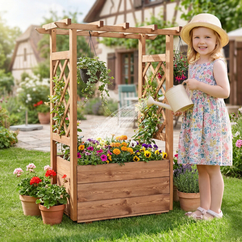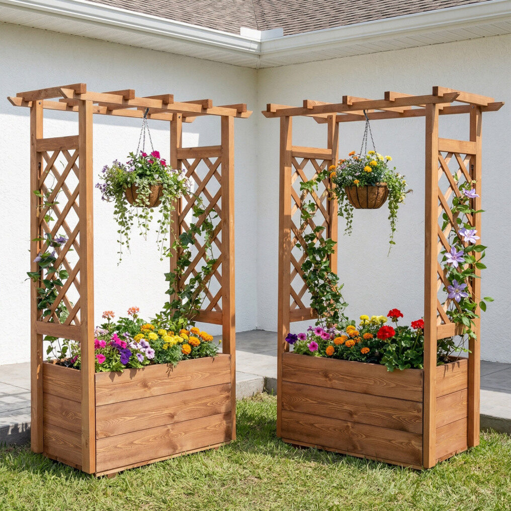 ● Ample Planting Space: The elevated garden bed comes with a large planter box for cultivating fruits, vegetables, flowers, herbs, and more. It also includes a diamond lattice trellis, providing reliable support for climbing plants to thrive while adding a decorative element.