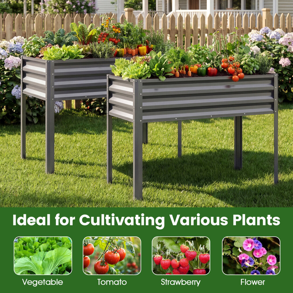 Raised Garden Bed with Legs Electro-Coating Metal Large Elevated Planter Box-Grey