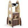 Adorable multi-level playground: Designed in the shape of a rocket, this 4-story cat playground delights curious felines with its playful design. Multiple openings and staggered platforms encourage climbing, jumping, and exploring, while the elevated perch provides the perfect vantage point for observing their territory.
