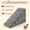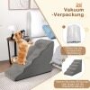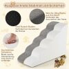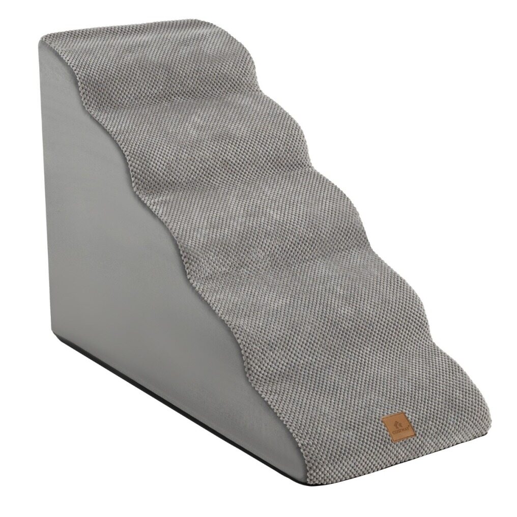 Our foam dog ramp features 5 levels, suitable for short-legged dogs or pets with arthritis, joint stiffness or other mobility issues, allowing them to get up or down from the bed, sofa or stool at will. It features a high-density foam core that provides soft yet sturdy support, and a non-slip bottom to prevent the ramp from moving. With safety in mind, our stairs offer wider and deeper steps, creating a pet-friendly slope that is easy on joints. Note: Stairs are vacuum-packed for convenience, fully expanding after 48 hours or more to their original shape.