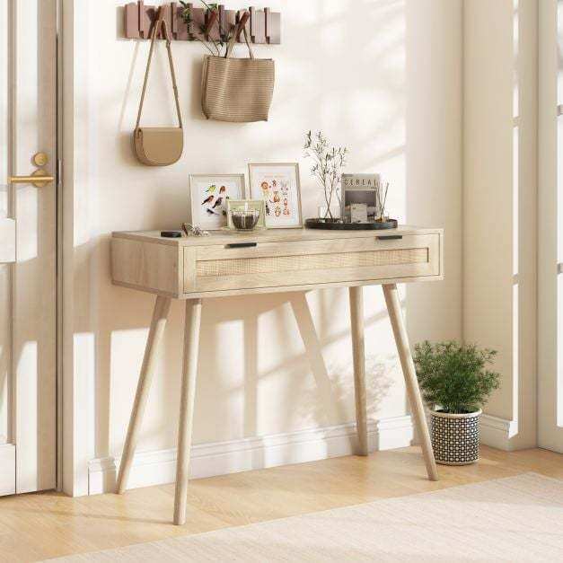 【Trendy Bohemian Style】Our entryway table combines the richness of elegant faux wood grain with the airy appeal of bohemian-style rattan woven details, creating a unique focal point in your home. The intricate design not only adds a touch of natural glamour, but also ensures good ventilation of the drawer.