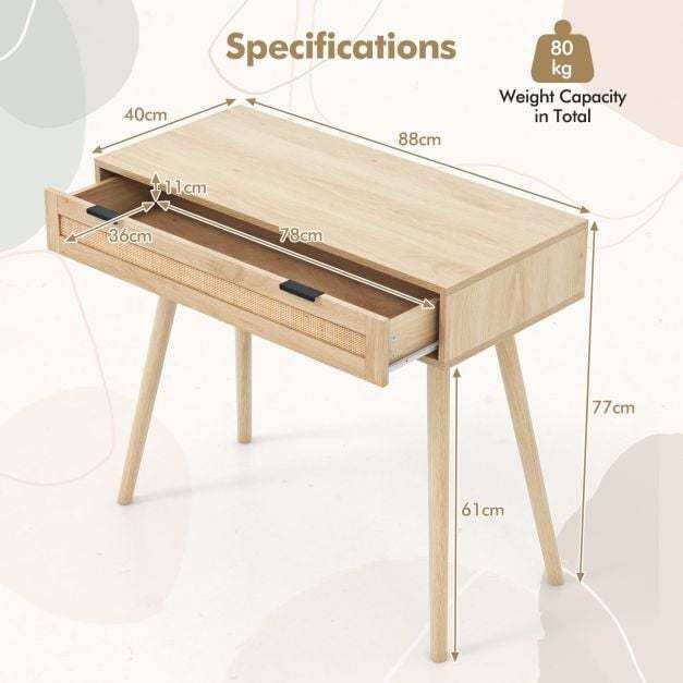 Our bohemian entryway table features elegant wood grain and trendy rattan, combining glamour and naturalness. You can easily enjoy the convenience of a spacious tabletop that provides ample space to display decorative items, while the large pull-out drawer offers convenient storage to keep your belongings organized. It is equipped with safety anti-tip kits and non-slip foot pads, ensuring longevity and stability. The smooth, waterproof and scratch-resistant surface requires minimal maintenance.