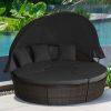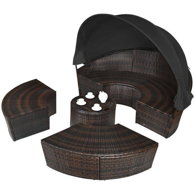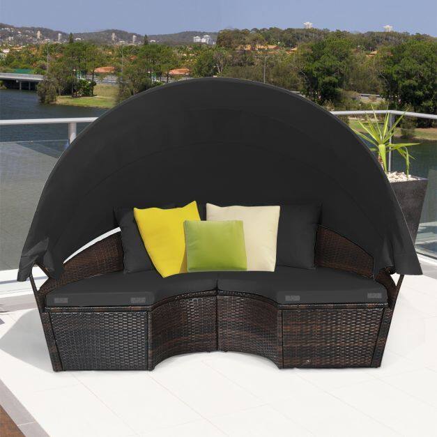 This outdoor day bed comes with a retractable canopy that is waterproof and sunproof, protecting your eyes from direct sunlight and keeping you cool on hot days. The included cushions are filled with thick and soft sponge for extra comfort. The cushion covers are waterproof and can be removed for cleaning. You can raise the top of the coffee table to put drinks, magazines, etc. In addition, this sectional sofa set can be used as a separate seat when visiting guests or family celebrations.