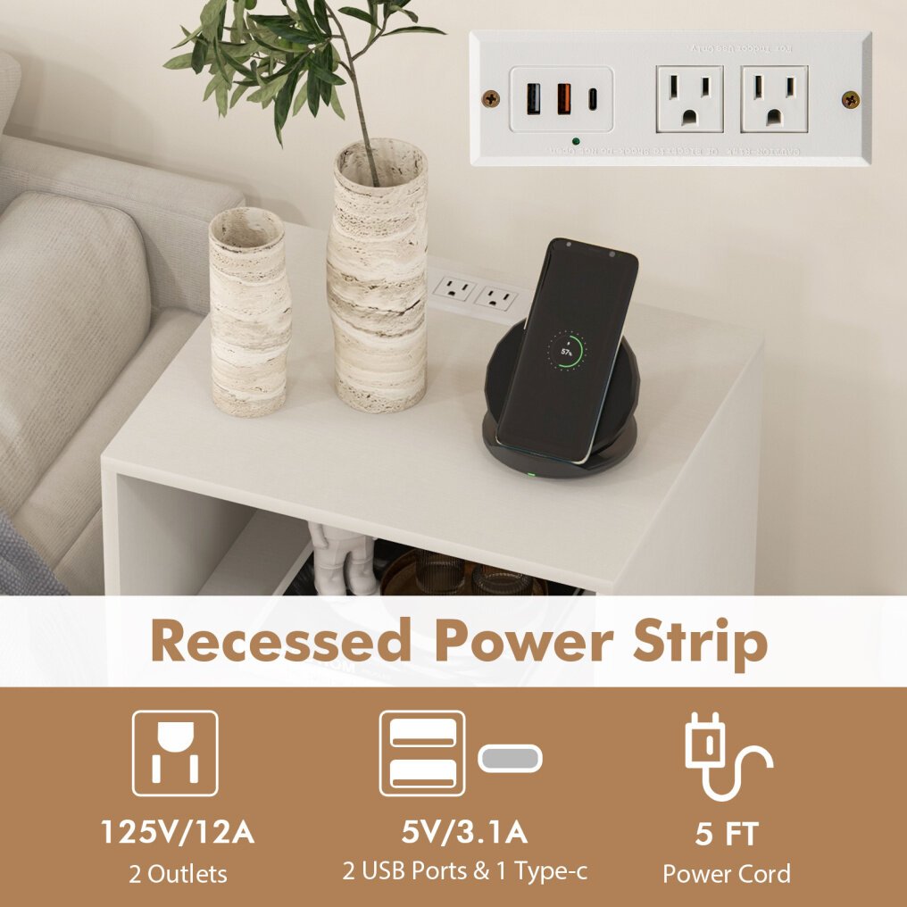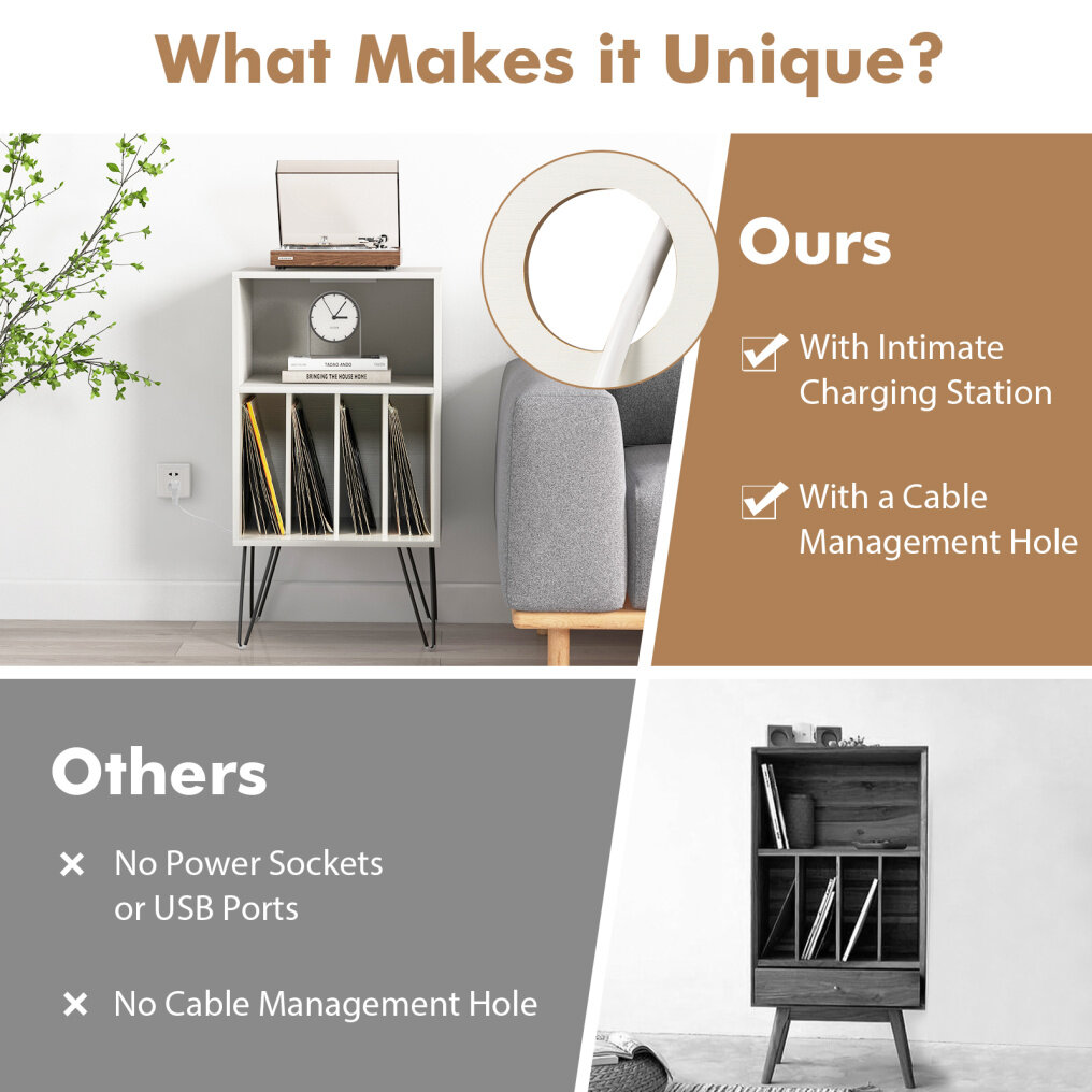 ● Enhanced Audio Experience: The record player stand is crafted to elevate your music listening sessions. The recessed power strip includes 2 outlets, 2 USB ports and 1 type-c port to keep your devices charged while immersing yourself in the world of vinyl records.