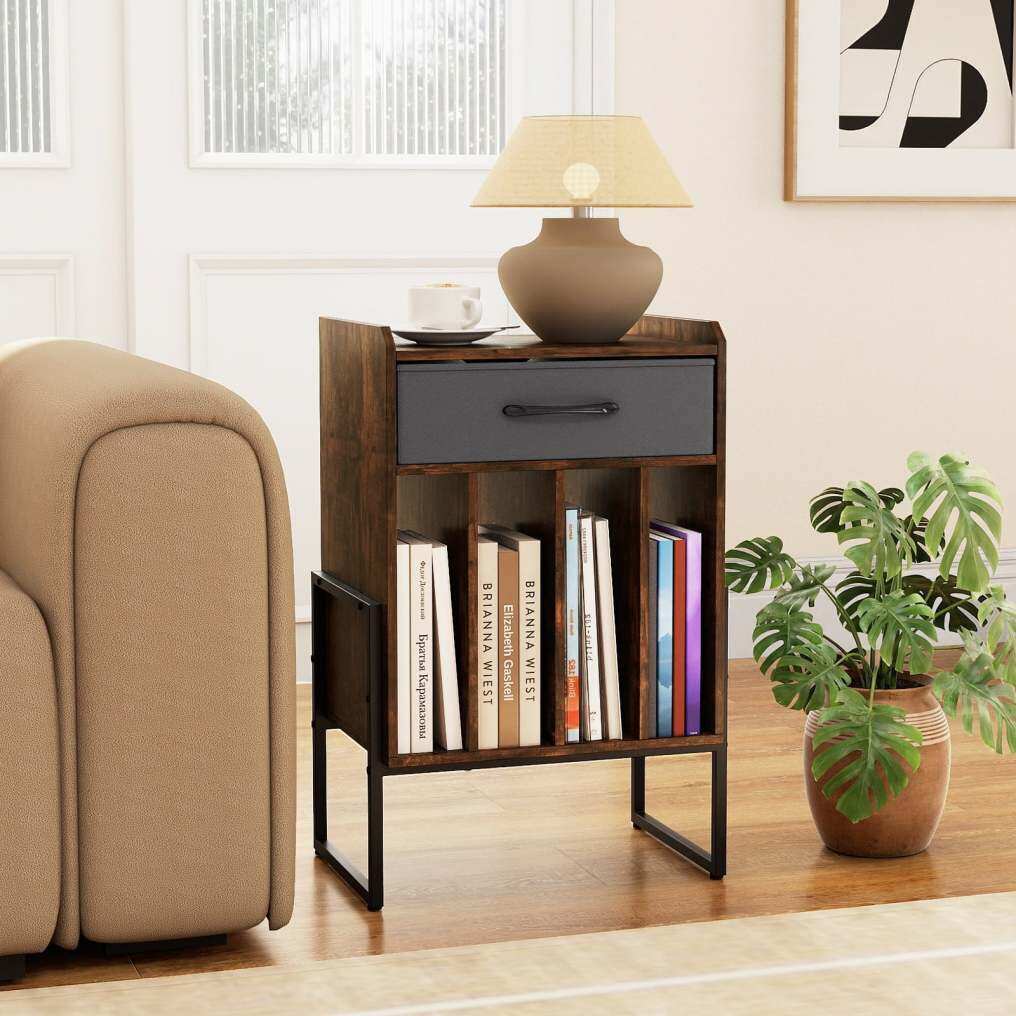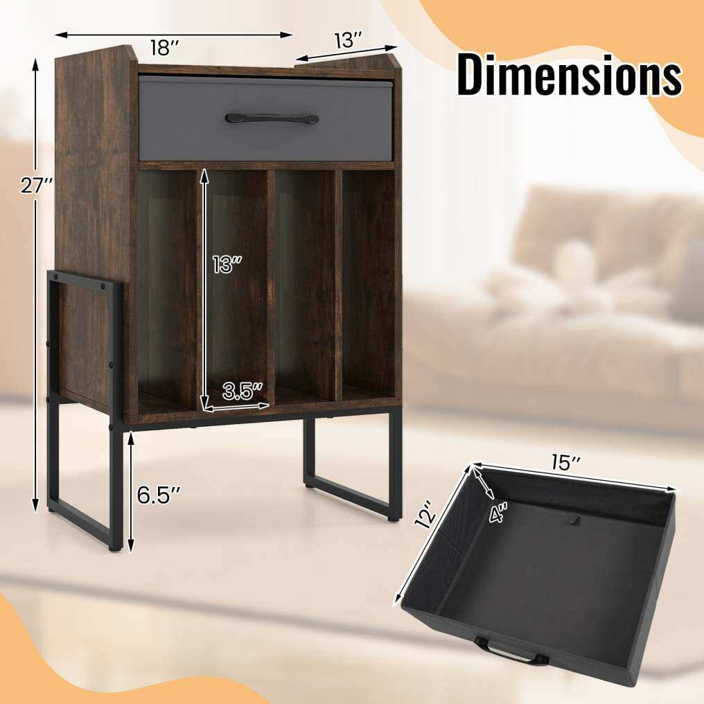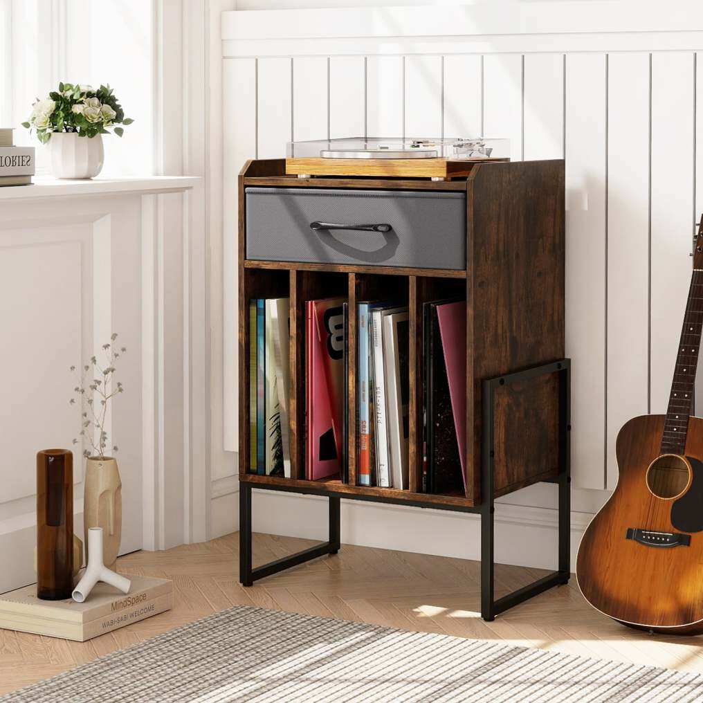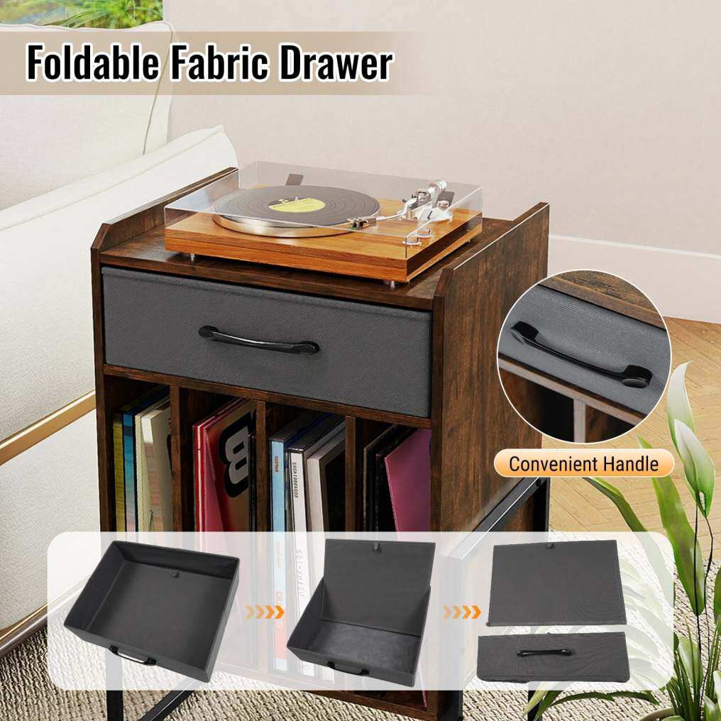 ● Ample Storage Space: Designed to enhance your audio experience, this vinyl record table features a spacious tabletop for placing turntables. With an added fabric drawer, this vinyl display shelf provides extra organized storage for your accessories.